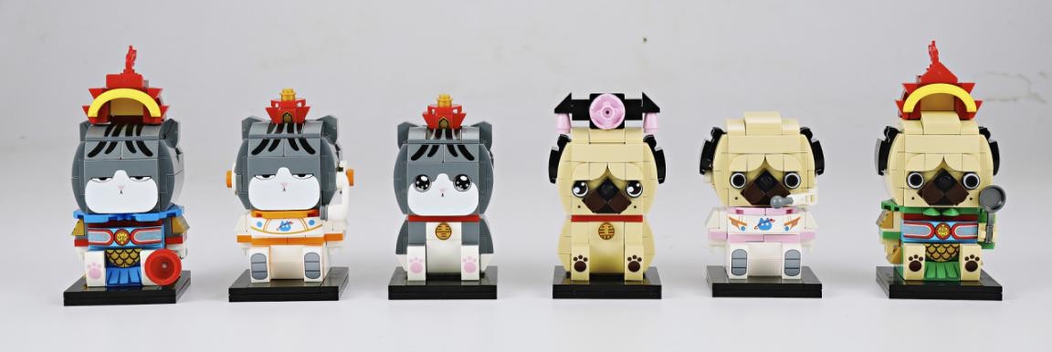 “吾皇”經(jīng)典形象為設(shè)定參考,通過積木拼搭來還原整體造型;配有統(tǒng)一底座。積木玩具精準(zhǔn)地抓住了吾皇的形象外形,頭戴清朝皇冠,貓咪身體條紋細(xì)節(jié)得以精美戰(zhàn)線,不少細(xì)節(jié)也通過移印技術(shù)得以展現(xiàn)。