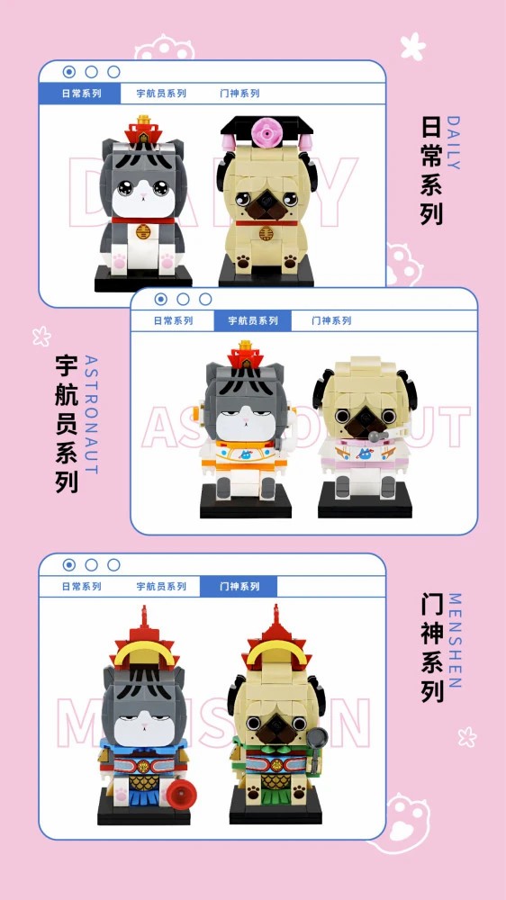 吾皇萬睡×古迪積木此次共上線“經(jīng)典系列、航天系列、門神系列”的六款聯(lián)名積木。為最大限度地還原#吾皇巴扎黑#的可愛形象,系列積木特別采用了具有弧度顆粒方塊進(jìn)行設(shè)計制作,為積木的整體造型增添了視覺上的Q萌感,還原了吾皇傲嬌、巴扎黑呆萌的小性格。